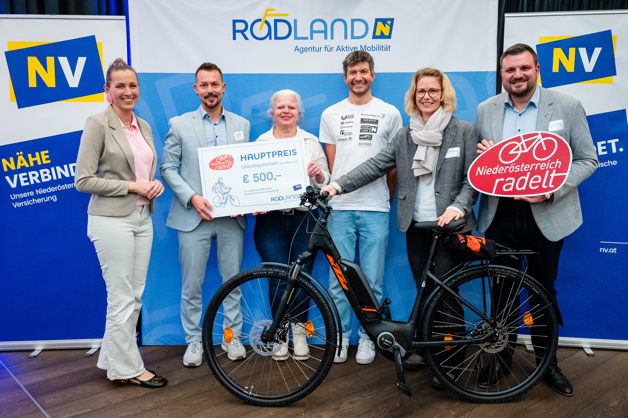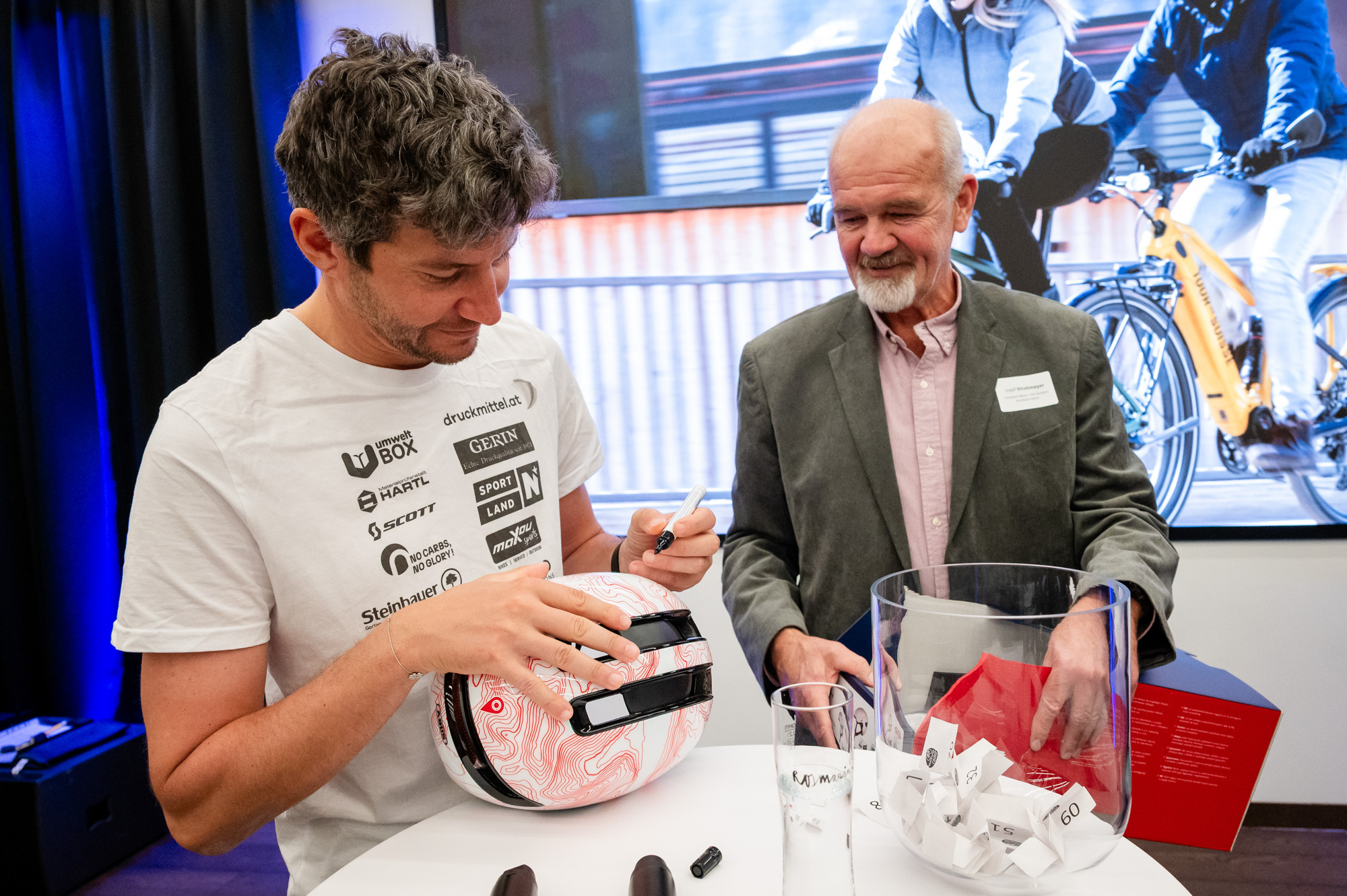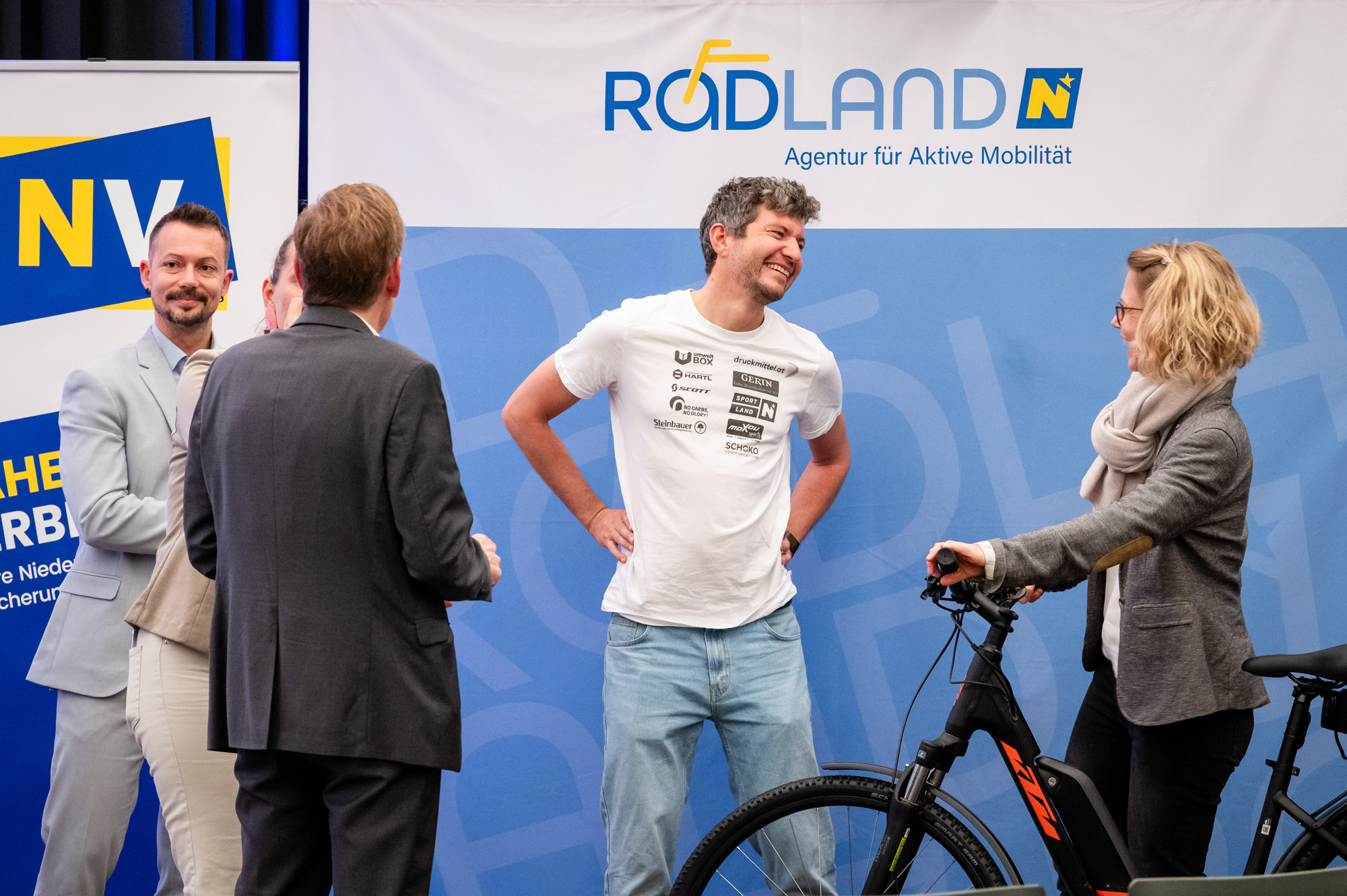Außerdem wurden zwei Hauptpreise an die glücklichen Gewinner übergeben: Katrin aus Seebenstein gewann ein KTM E-Bike und Anna aus Zistersdorf einen Reisegutschein im Wert von 500 €, zur Verfügung gestellt von der Niederösterreichischen Versicherung. Die Preise wurden unter allen Teilnehmern mit mindestens 100 Radkilometern verlost. Unter allen anwesenden Teilnehmern wurden außerdem 3 ABUS HUD-Y Radhelme im exklusiven Österreich radelt Design verlost, die von Philipp Kaider signiert wurden.