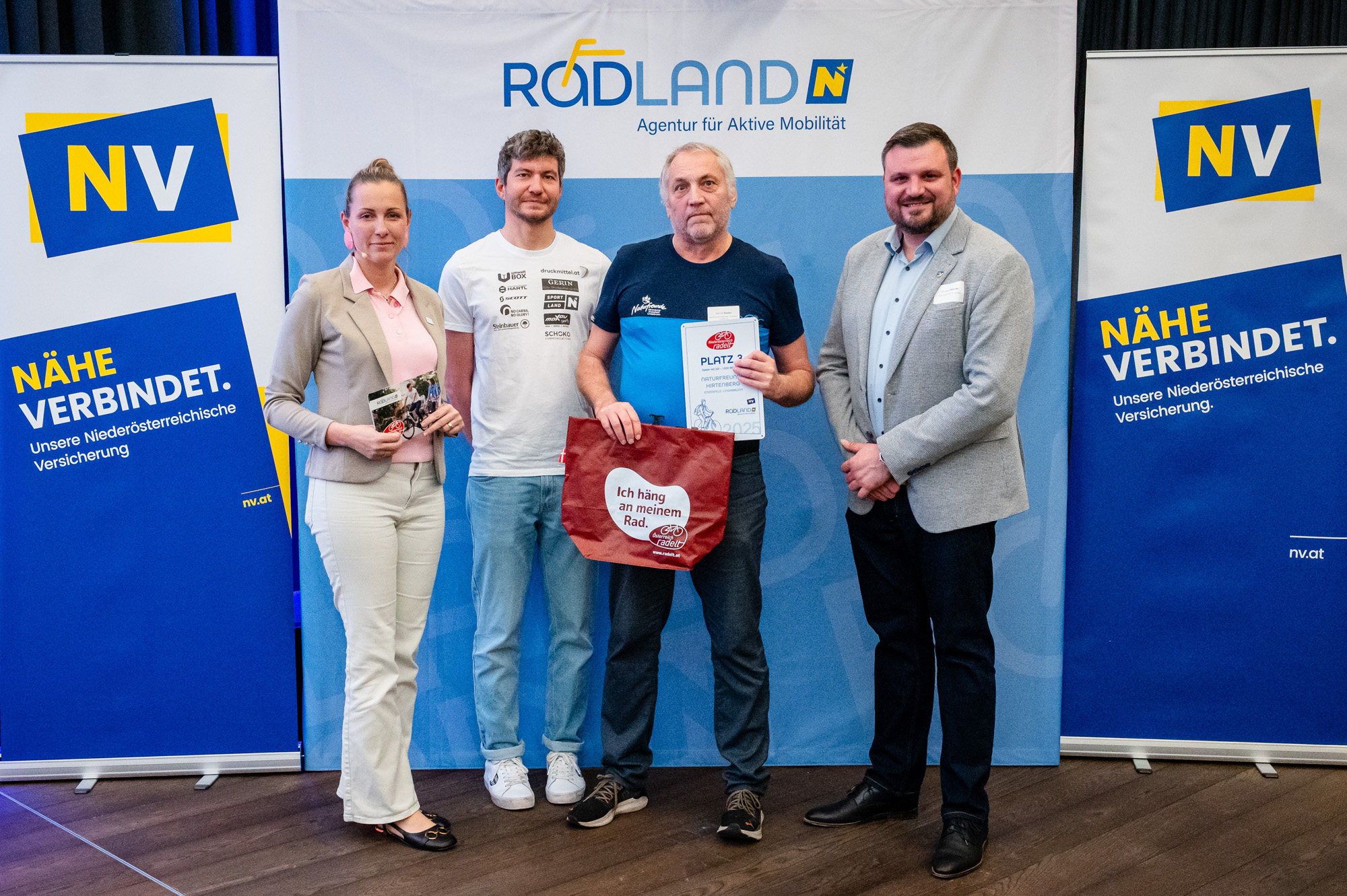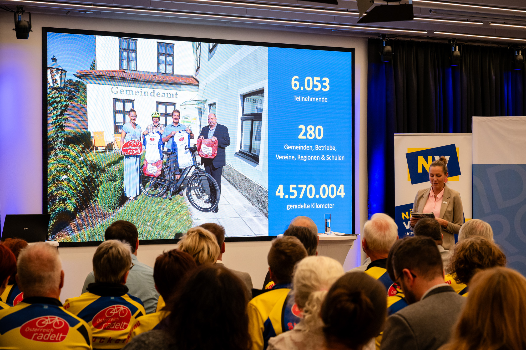 Mehr als 6.000 Teilnehmerinnen und Teilnehmer aus Niederösterreich haben im heurigen Jahr gemeinsam rund 4,6 Millionen Kilometer gesammelt, was rund 114 Erdumrundungen entspricht. 280 Veranstalter haben mitgemacht und zahlreiche Bürger, Kollegen und Mitglieder zum Mitradeln motiviert. Bei der großen Auszeichnungsfeier im Raiffeisen Corner in St. Pölten wurden die engagiertesten Gemeinden, Vereine, Betriebe, Schulen und Regionen für ihre Leistungen geehrt. Die Reihung der Veranstalter erfolgte wie auch schon in den Vorjahren nach erreichter %-Beteiligung. Bei Gleichstand wurde in weiterer Folge nach den geradelten Kilometern pro Kopf gewertet.