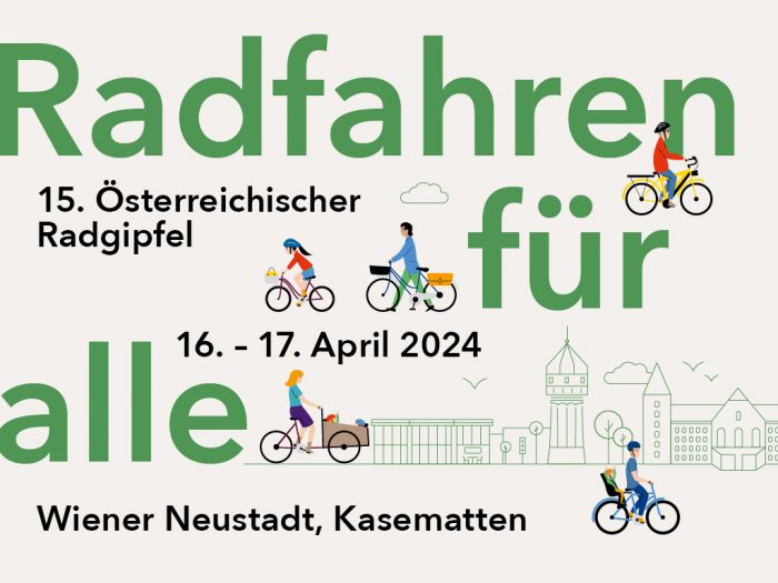 Am 16. und 17. April 2024 findet der 15. Radgipfel in Wiener Neustadt statt. Teilnehmer können sich auf Fachvorträge und Aktivitäten freuen, wobei das Thema „Radfahren im Alltag“ im Fokus steht. Es geht um die Frage, wie wir bequemer, sicherer und schneller mit dem Rad im Alltag unterwegs sein können. Save the Date!