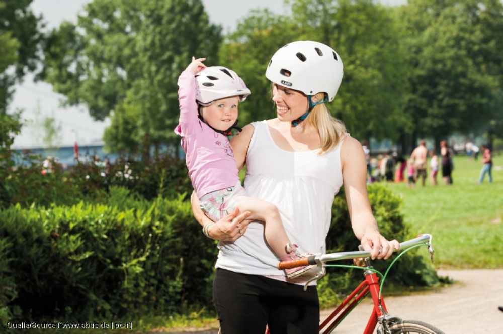 In Österreich gilt ein Helmpflicht für Kinder bis 12 Jahren. Besonders bei ersten Helmen, die hauptsächlich für Kindersitz oder -anhänger gedacht sind, sollte man darauf achten, dass der Helm am Hinterkopf abgeflacht ist, um eine bequeme Kopfhaltung zu erlauben. Außerdem sollte der Kinnriemen gepolstert und verletzungsfrei zu schließen sein.